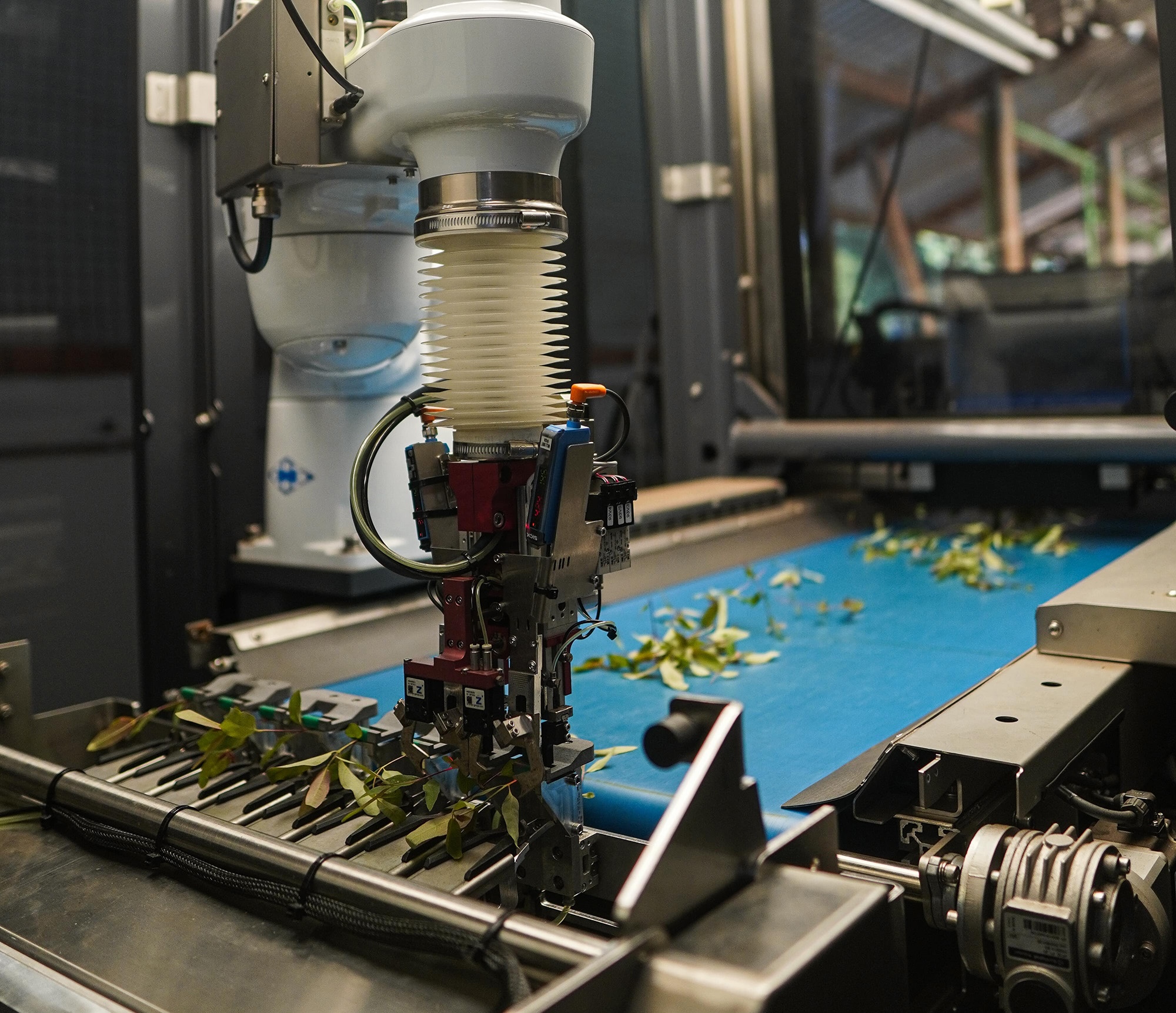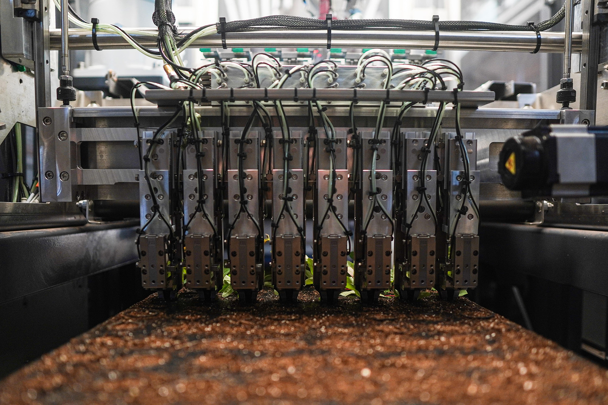 O Cutting Planter Eucalyptus apresenta uma ponte de plantio redesenhada, equipada com componentes avançados, como uma unidade de centralização e garras em formato de pinças. Isso garante uma orientação precisa do caule da miniestaca no substrato, mesmo para variedades com caules delicados ou frágeis.