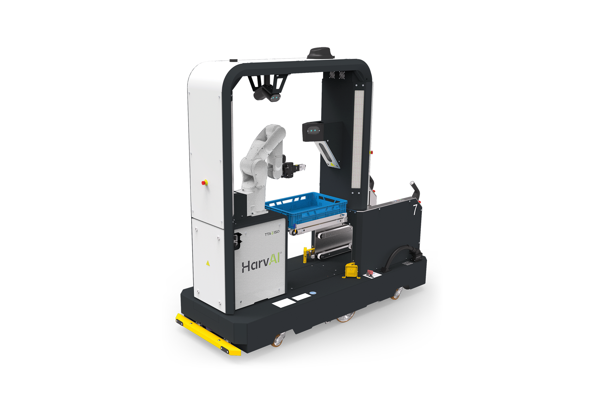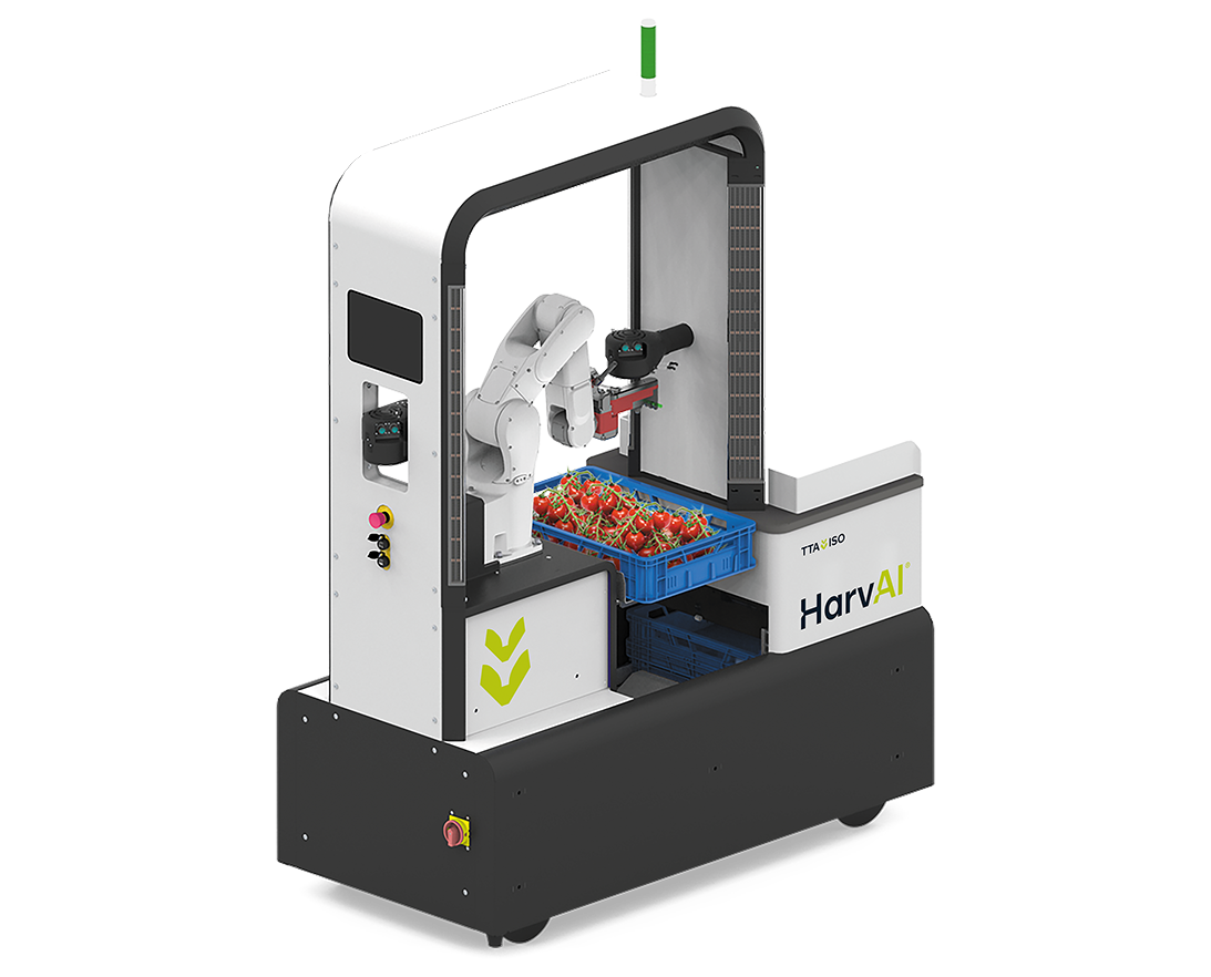Após anos de pesquisa, desenvolvimento e rigorosos testes de campo, a TTA-ISO tem o orgulho de apresentar o HarvAI®: um robô de colheita de última geração criado para fornecer resultados consistentes, de alta qualidade e em escala. Esse avançado robô de colheita integra detecção precisa de maturação, navegação inteligente do robô e compatibilidade com a infraestrutura de estufa existente.