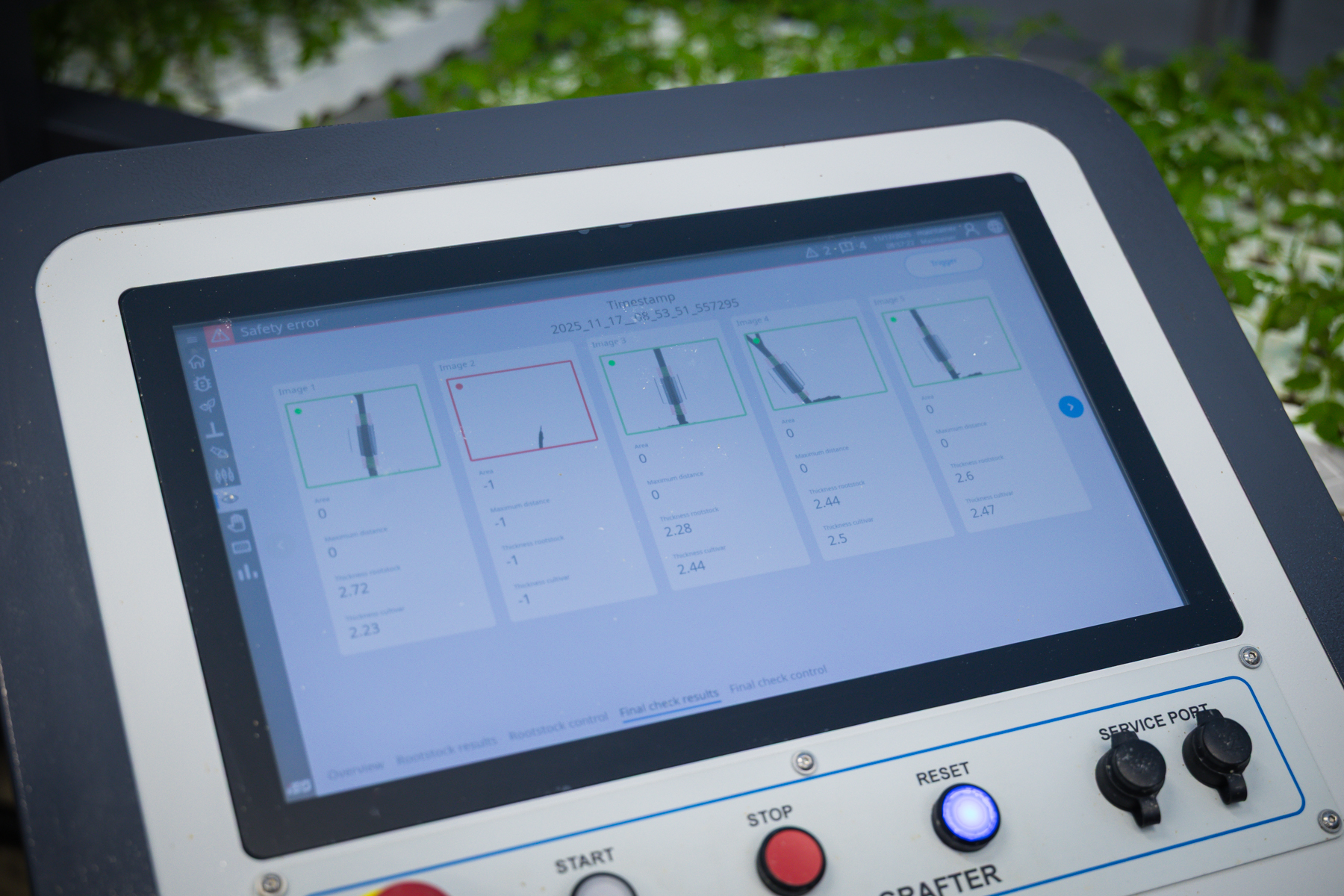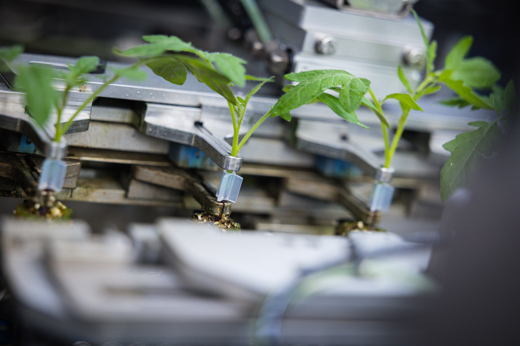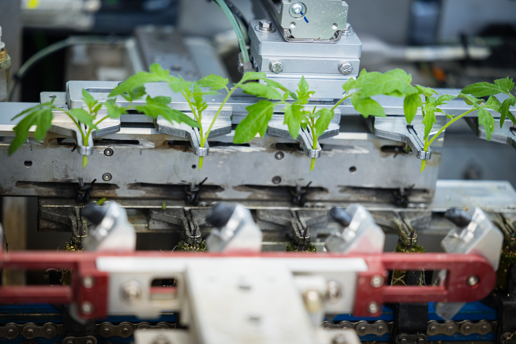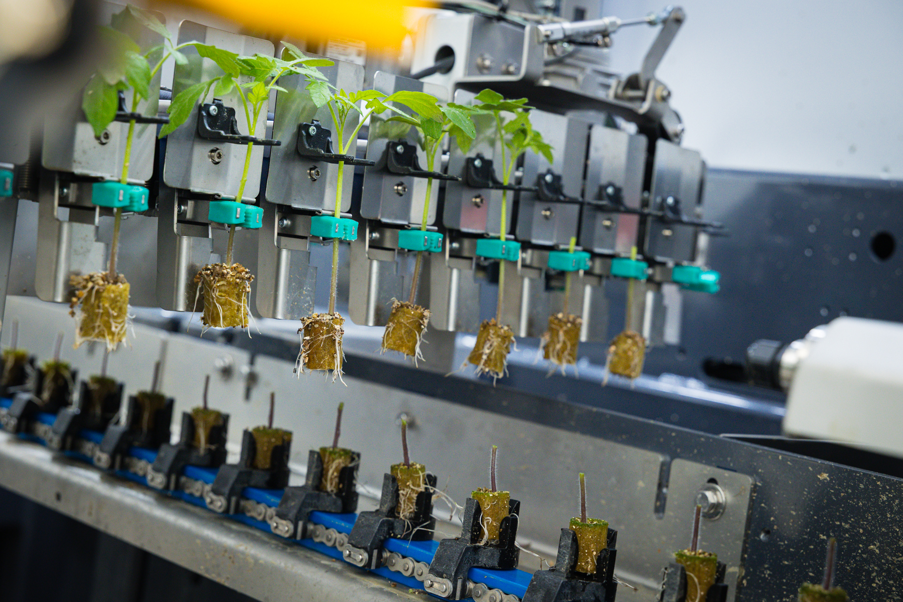 Projetado para viveiros de tomate, o sistema proporciona uma redução de até 80% na mão de obra, mantendo rigorosos padrões de higiene. Um processo integrado de desinfecção automática minimiza a contaminação cruzada e contribui para um fluxo de trabalho de enxertia estável e repetível. O resultado é um processo de enxertia controlado e escalável acima dos cotilédones, com qualidade consistente das plantas, manuseio manual reduzido e maior eficiência operacional.