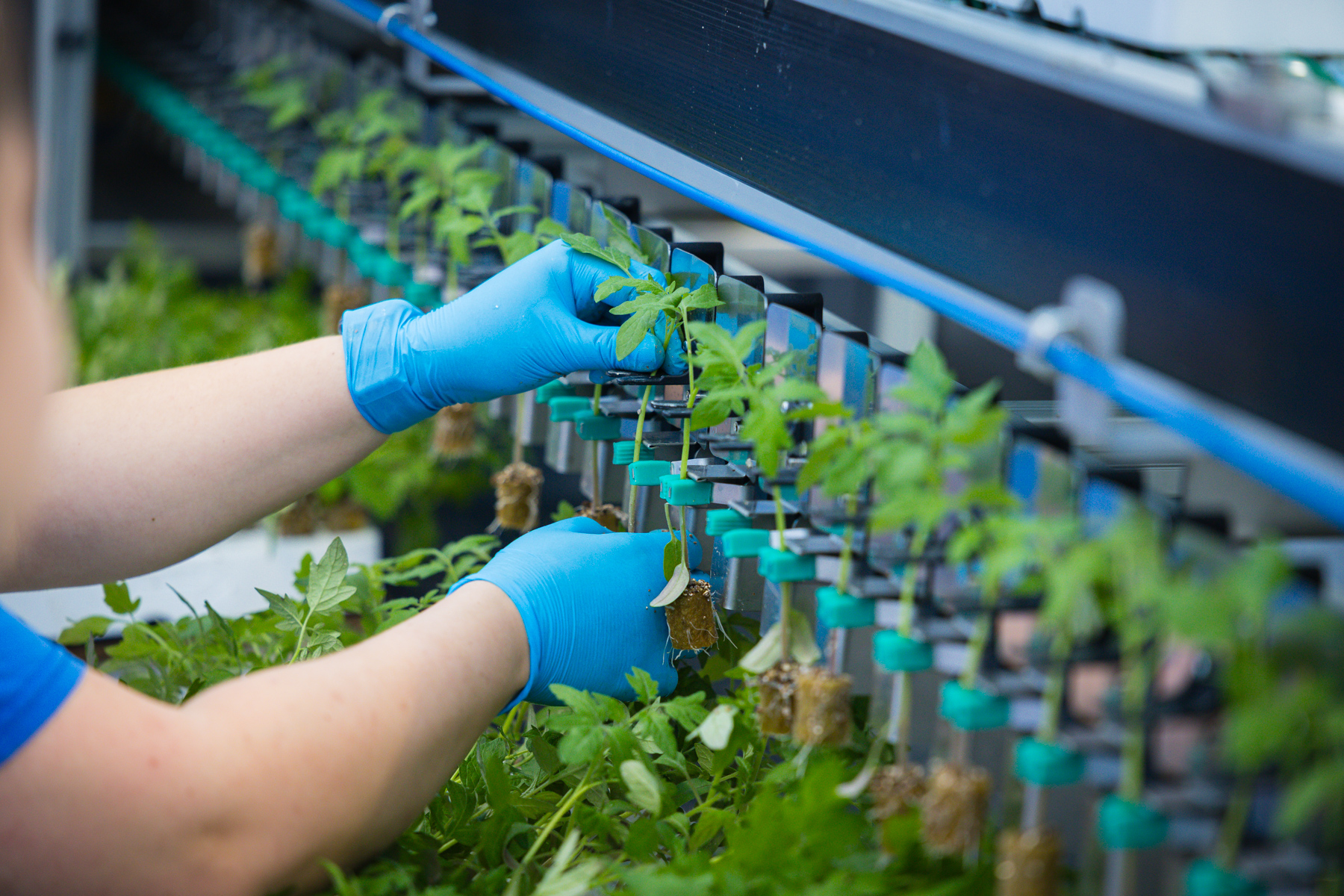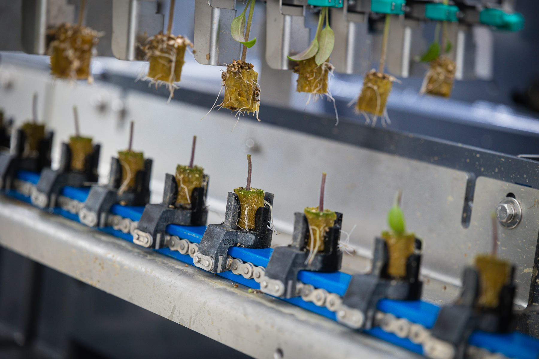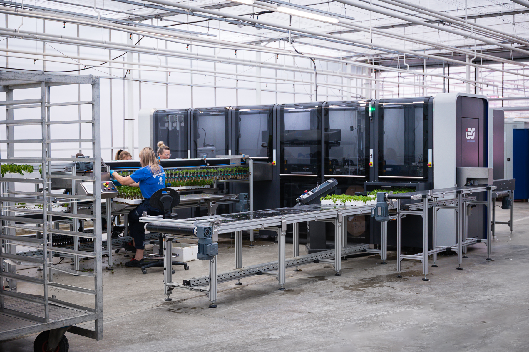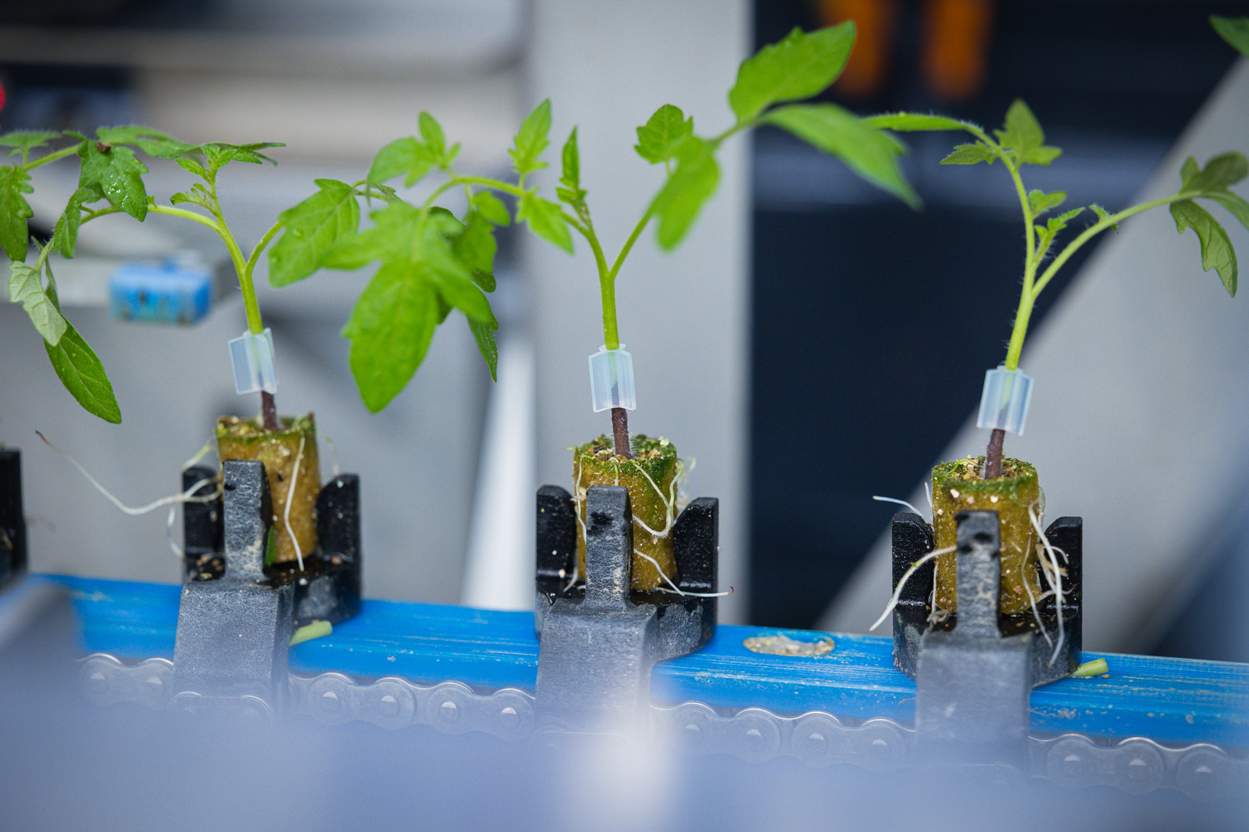 Projetado para viveiros de tomate, o sistema proporciona uma redução de até 80% na mão de obra, mantendo rigorosos padrões de higiene. Um processo integrado de desinfecção automática minimiza a contaminação cruzada e contribui para um fluxo de trabalho de enxertia estável e repetível. O resultado é um processo de enxertia controlado e escalável acima dos cotilédones, com qualidade consistente das plantas, manuseio manual reduzido e maior eficiência operacional.